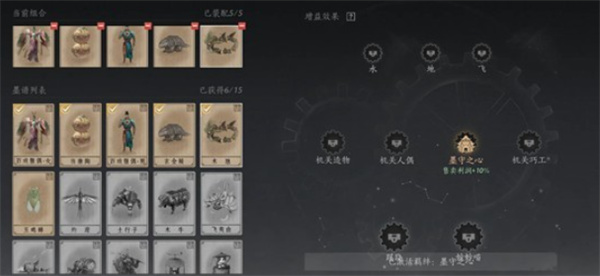 不同墨谱提供不同经营加成;